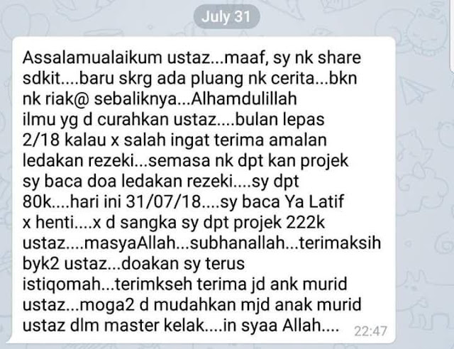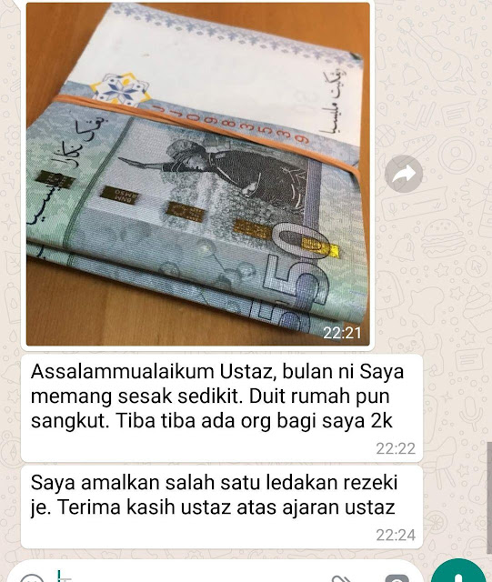 JANGAN TUNGGU LAMA KERANA RAHSIA INI TELAH TERBUKTI ADA YANG AMALKAN SECARA KONSISTEN MENDAPAT BANYAK KEBAIKAN DAN SECARA TIDAK LANGSUNG DAPAT MENARIK KEREZEKIAN YANG BANYAK.